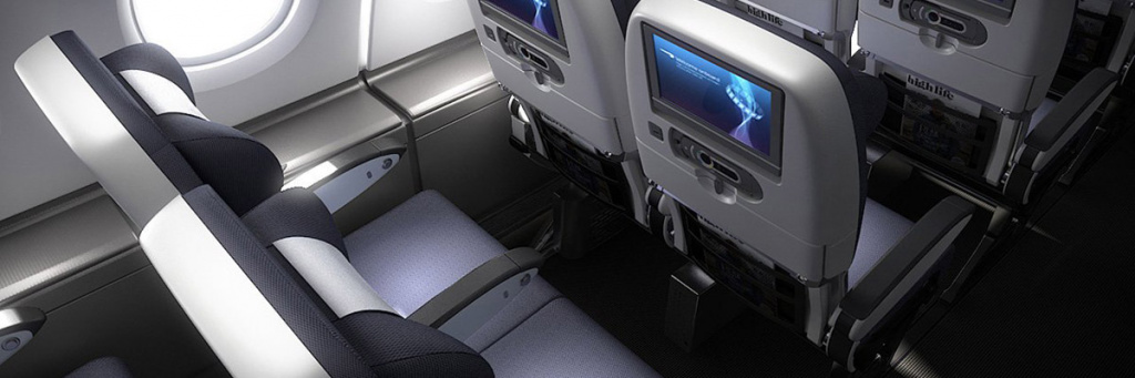 WORLD TRAVEL PLUS (Улучшенный экономический класс):Улучшенный эконом-класс представлен шестью рядами с расположением стандартных кресел 2:3:2, в шестом ряду 2:0:2. Все места достаточно удобные, но можно отметить 21 ряд — он близко расположен к туалету, частое хождение людей может добавить неудобства.
