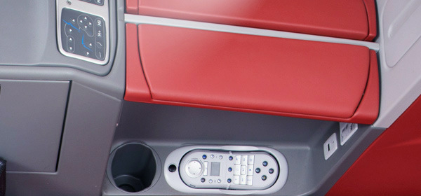 Первый класс занимает два ряда в носовой части самолета, он рассчитан всего на восемь пассажиров. В салоне первого класса есть дополнительное пространство для багажа. Оснащенность универсальным переключателем положений спинки кресла, подголовника, поддержки позвоночника и освещения. В салоне предусмотрен экран большего размера, на котором можно просмотреть свежие фильмы и телепередачи, а также новый сенсорный пульт управления. Все места достаточно удобные и просторные.