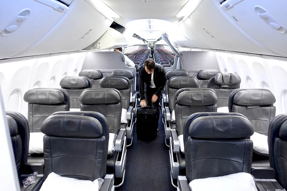 Кресла бизнес-класса шире, чем в экономе, спинки хорошо откидываются, что позволяет отдохнуть с комфортом. Места 1 ряда ACDF находятся возле кухни, поэтому возможен шум, а в ночных перелетах свет с кухни может нарушить ваш сон. Столики установлены в подлокотниках из-за чего они неподвижны. Во время взлета и посадки на полу нельзя размещать личные вещи и сумки.