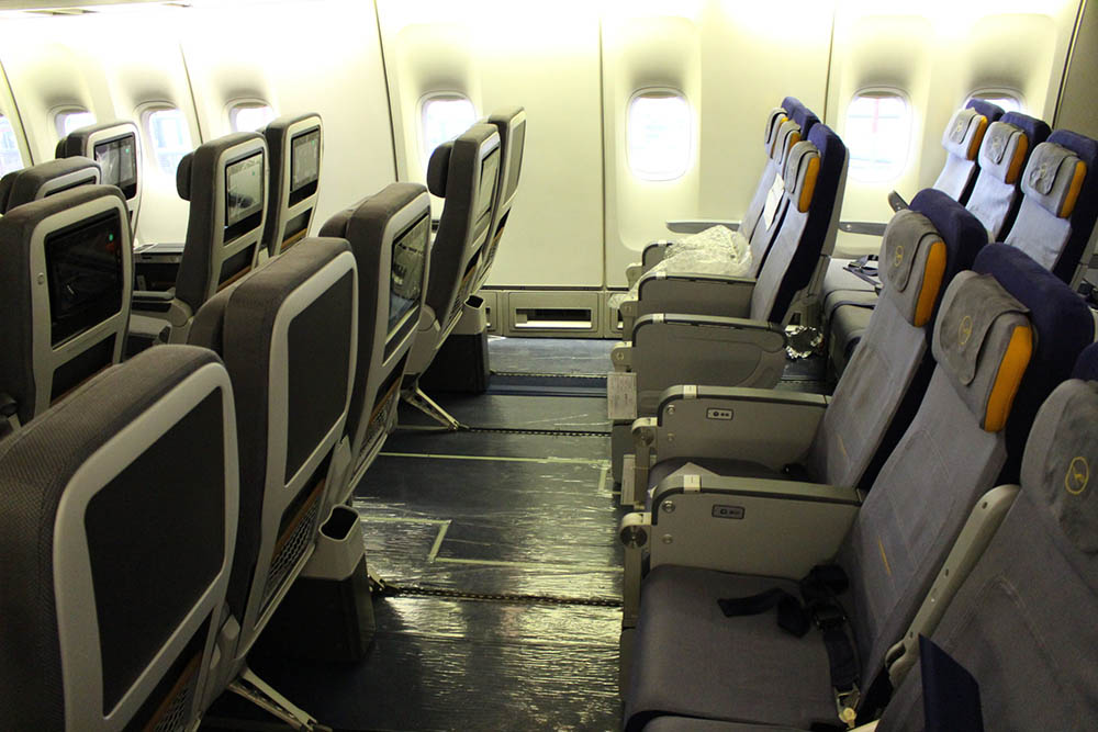Фото салона экономкласса самолета Боинг 747 400 авиакомпании Lufthansa