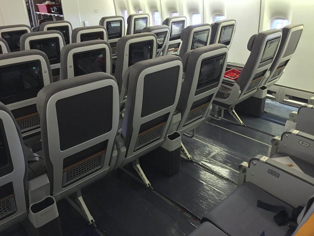 - Места 5 ряда — это места повышенного комфорта. Здесь много места для ног. Ширма отделяет пассажиров бизнес-класса. Расстояние между рядами — около 86 см. мониторы 8.9 дюйма.